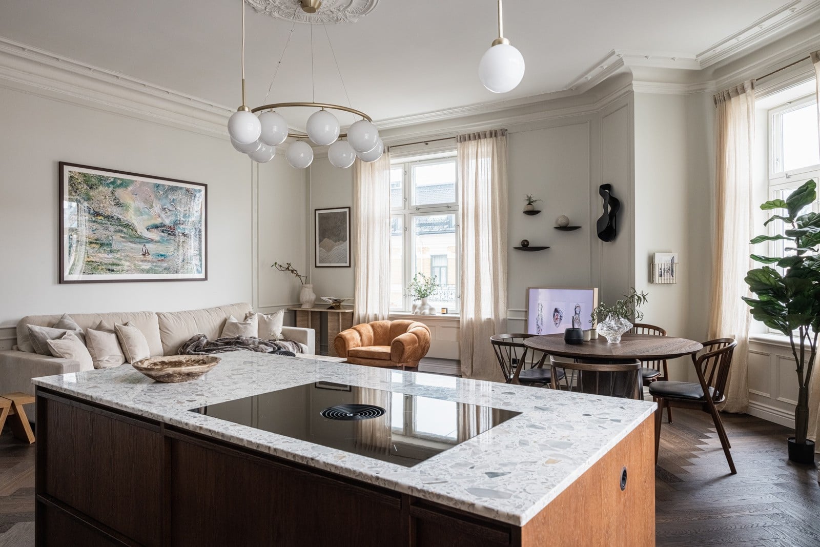 • Implementert Kjøkken fra Nordiska kök med benkeplate i Terrazzo Calacata marmor.