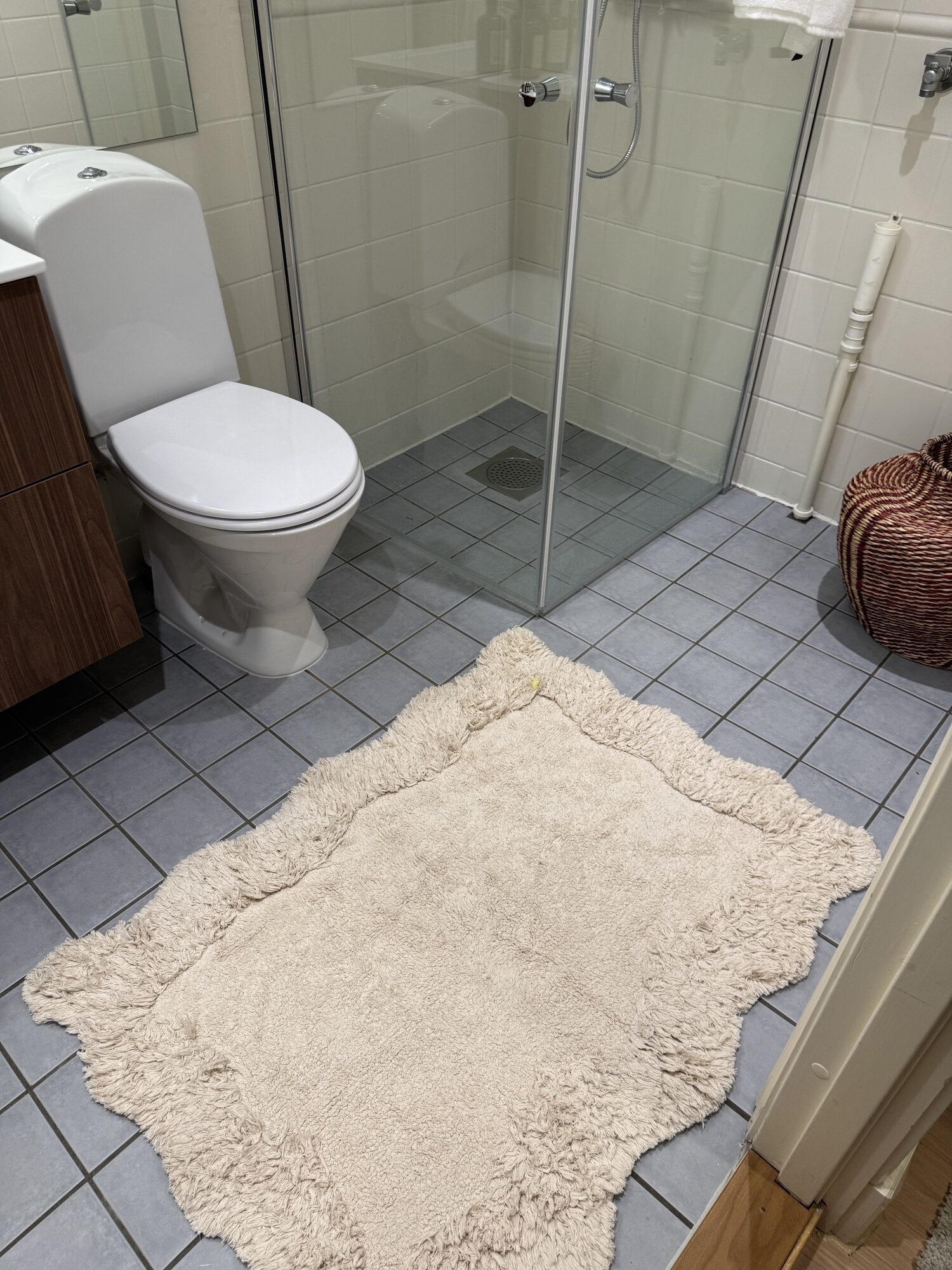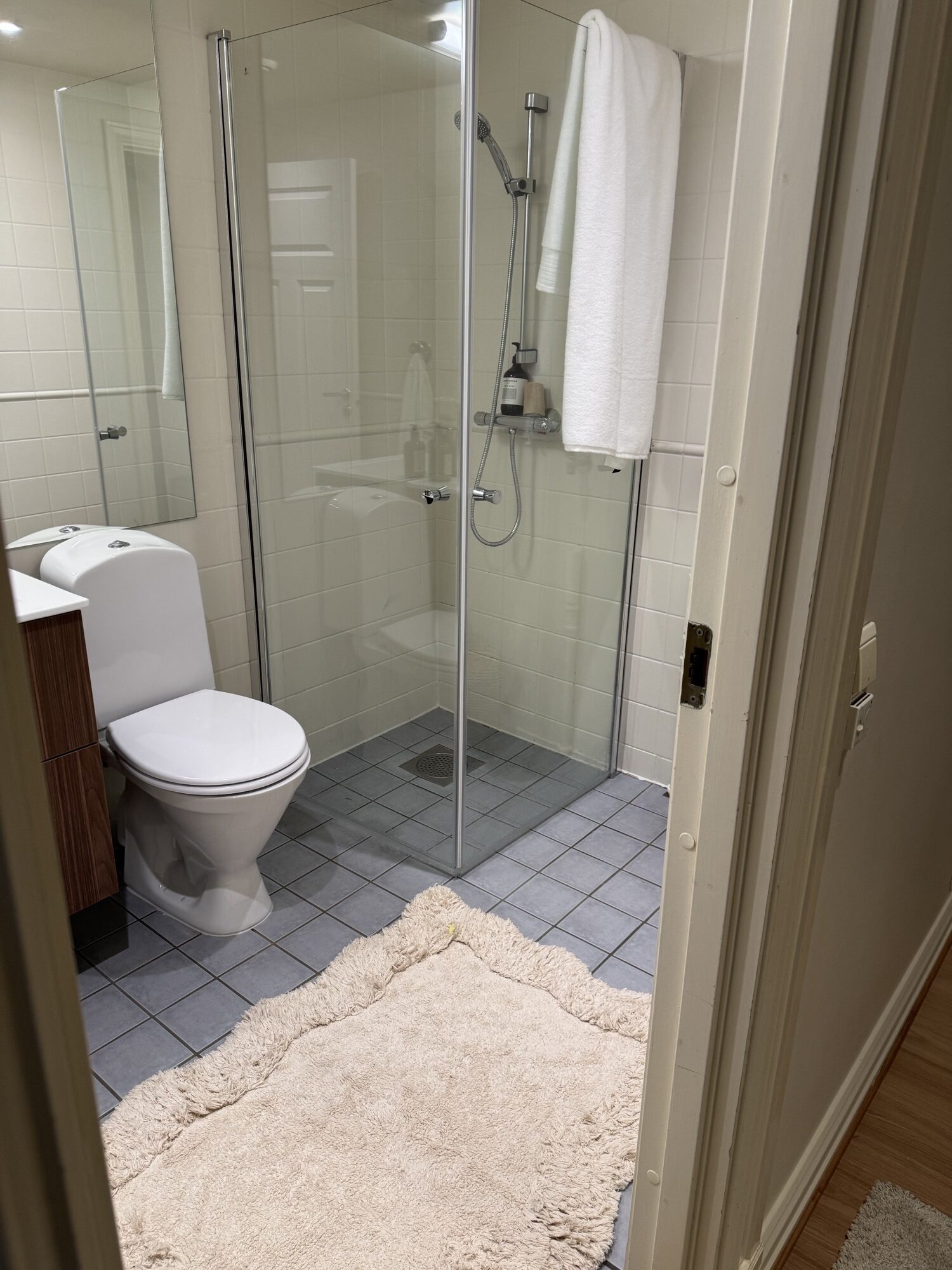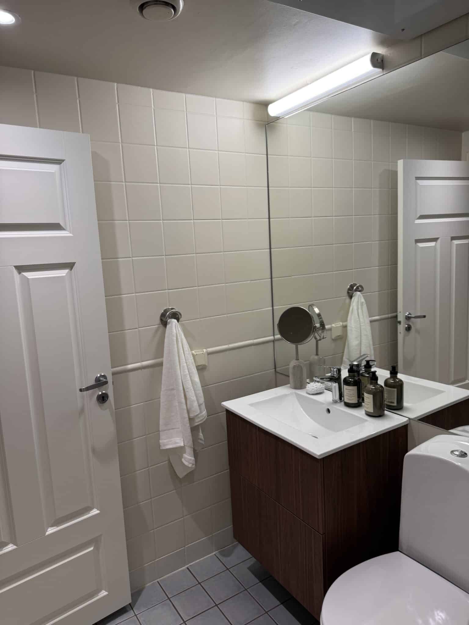- Glassvegger i dusjsone beholdt og tilpasset.